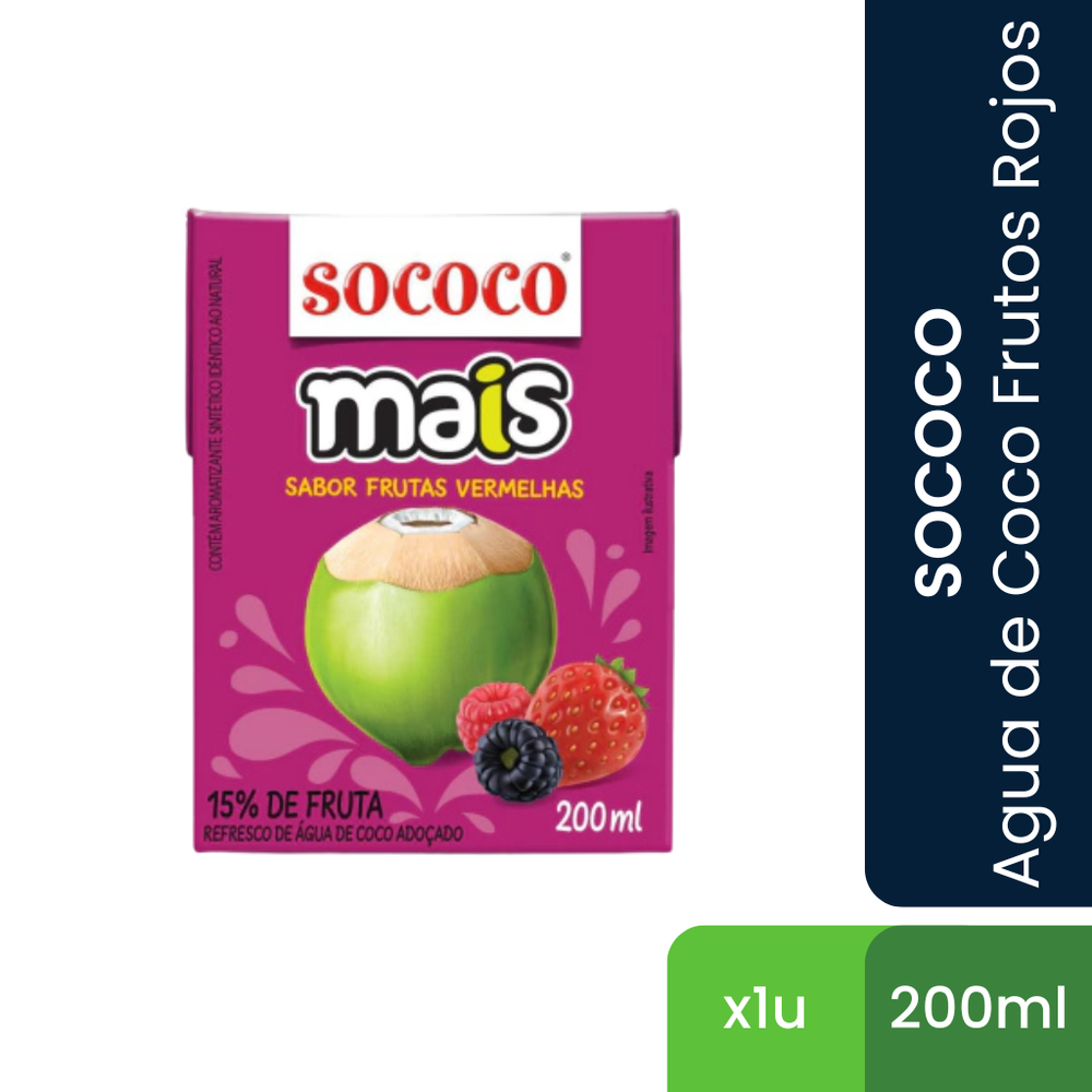 SOCOCO Agua de coco sin azucar frutos rojos 200ml